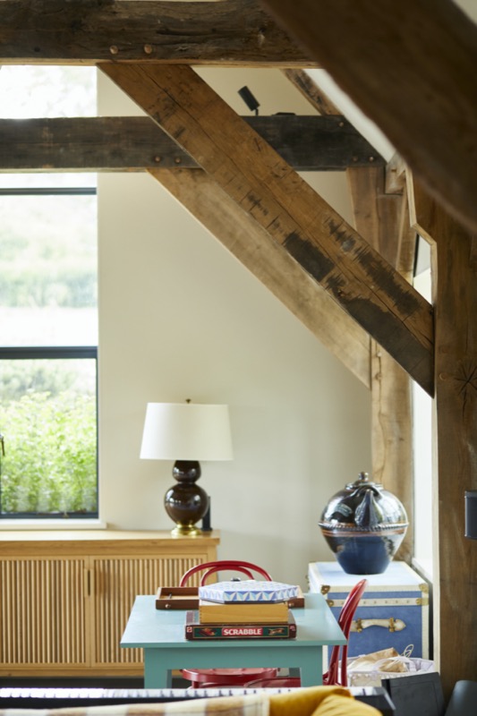 The large attached listed barn was the most extensive project in that it had to be completely dismantled with the beams numbered and repaired for correct reinstallation. A previous architect had detailed that the rotted lower sections be cut off and substituted with concrete supports which might have been acceptable for an agricultural out-of-the-way barn, but not for something you wanted to live in.