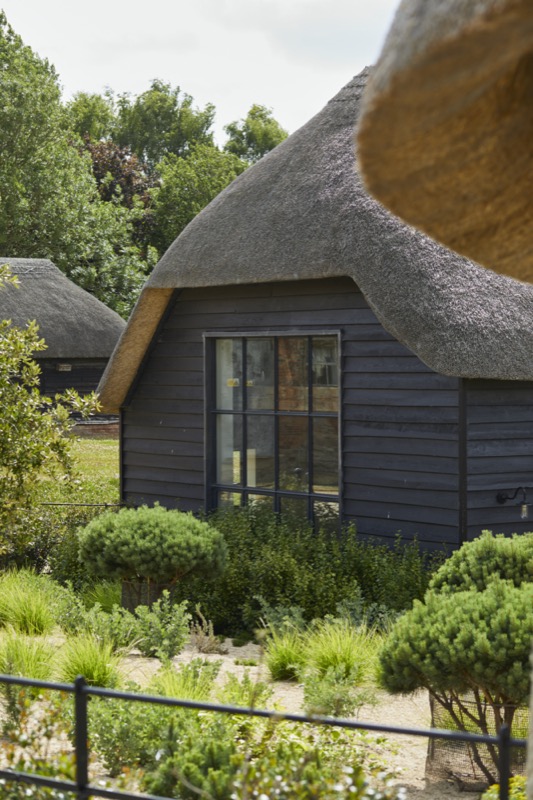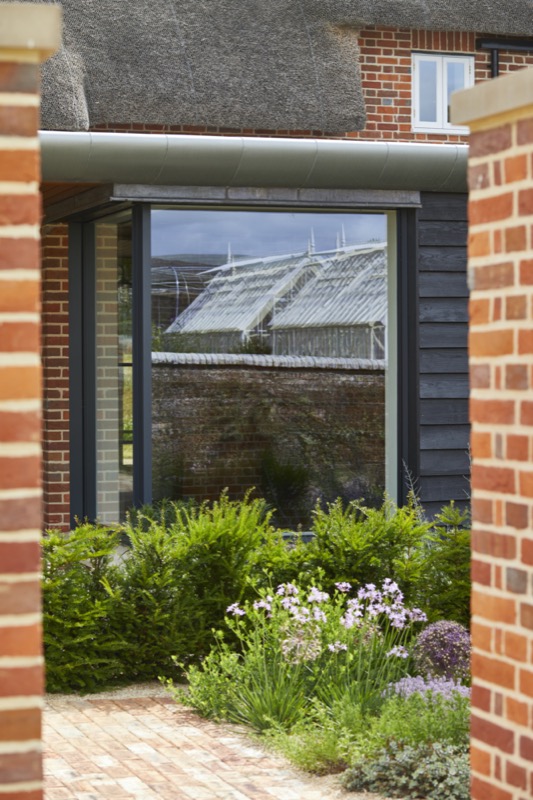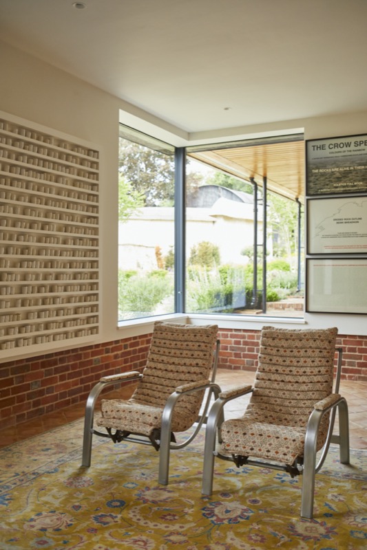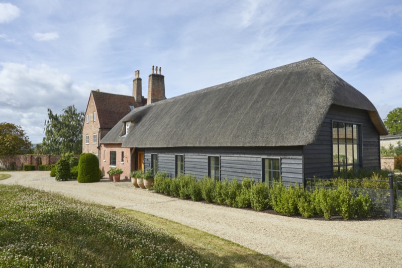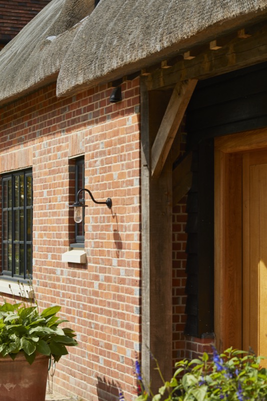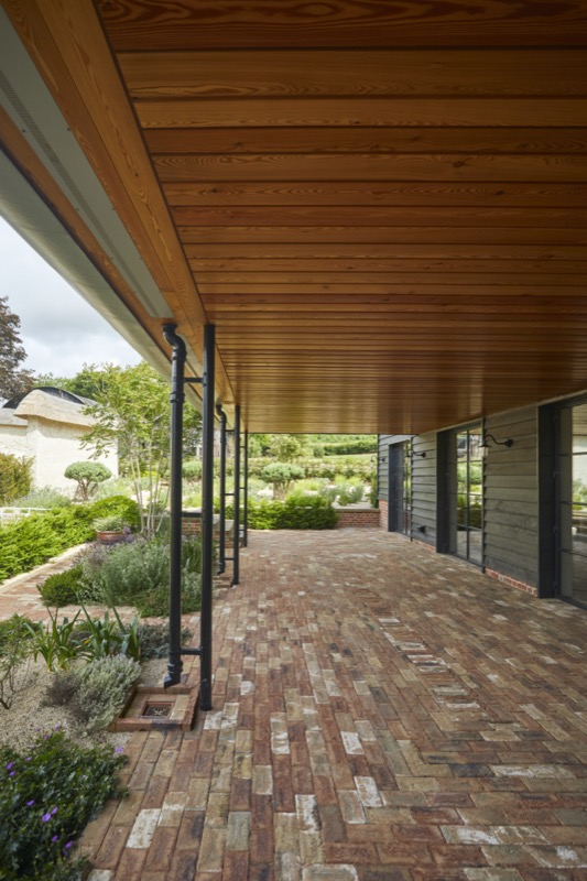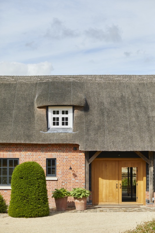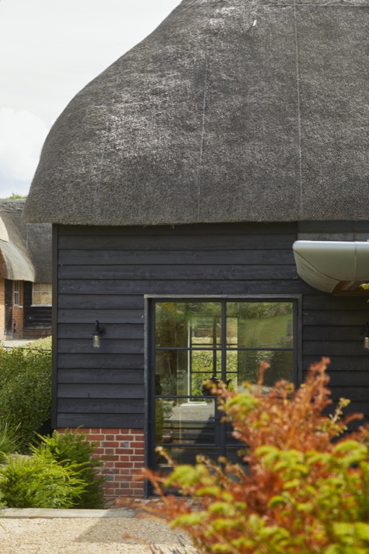 The new thatched roof was combined with a complimentary zinc roofed and timber extension with integrated hidden features such as door and window openings with one side open to, and integrating with the garden.