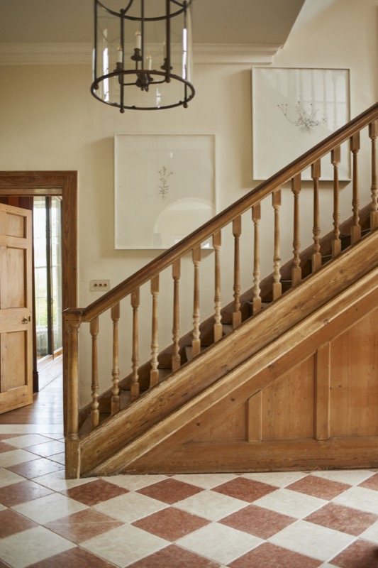The main house work included a new roof, much repair and restoration of the building's details such as staircases and mouldings as well as the relaying of the floors using pre-aged oak boards.