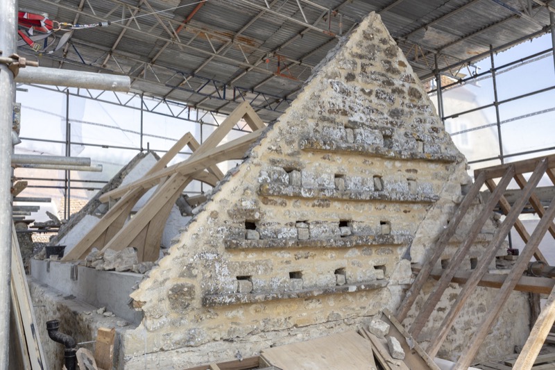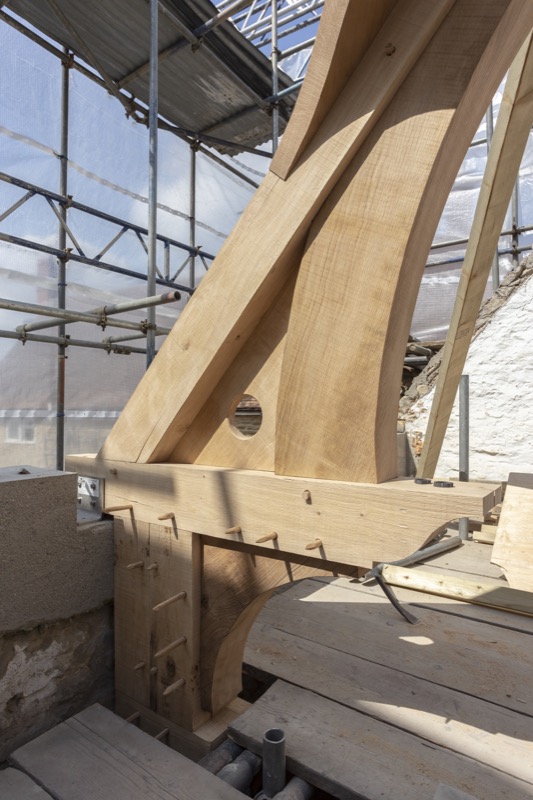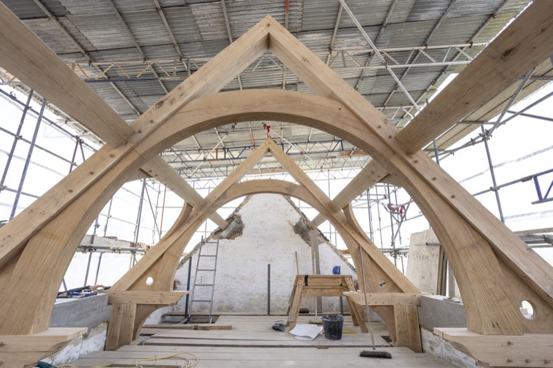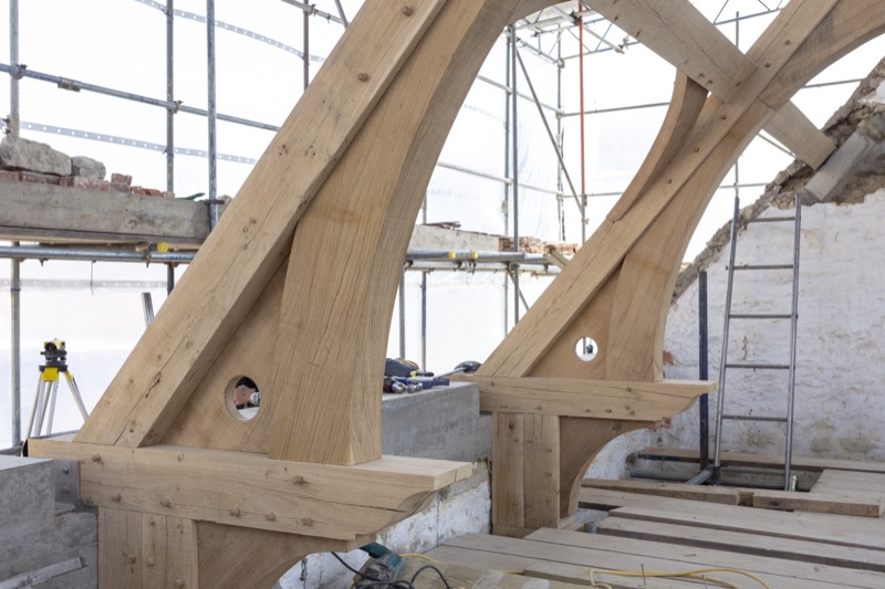 Our approach is to understand what makes a building attractive, interesting and often unique and dovetail it to its new purpose. In this case it meant replacing the totally rotted roofing timber with a new oak construction using traditional methods with curves, pegs and stone bases rather than steel, bolts and concrete.