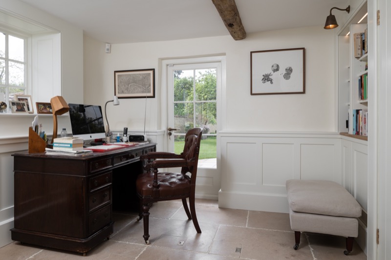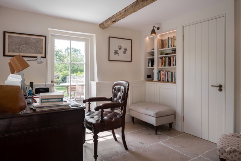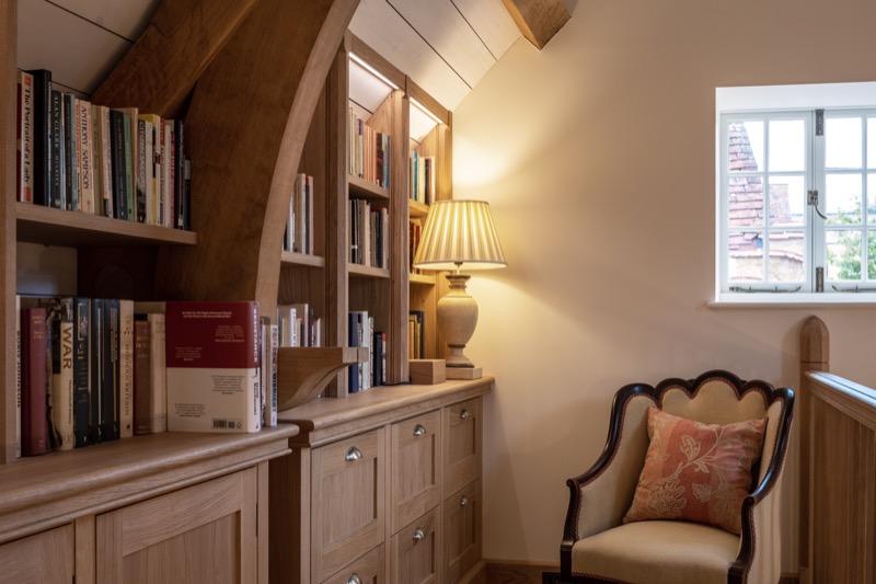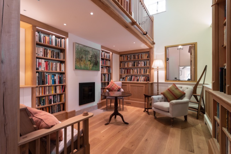 The interior was completely remodelled with a new oak stairacse, landing, beautifully crafted cupboards, library, bathroon, kitchette and office.